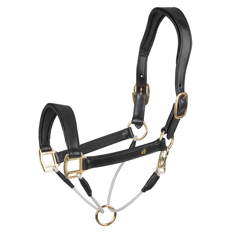 Capezza anatomica regolabile in pelle Waldhausen S-Line Royal con inserti in corda sul sottogola e fibbie color oro. La cavezza S-Line Royal è realizzata in cuoio di qualità, un modello dal design anatomico confortevole per il cavallo. La leggera imbottitura sulla capezzina e il sovra-capo aiuta a ridurre la pressione sul muso dell’animale. Il sottogola e la parte posteriore della nasiera sono realizzati in corda fine e morbida e uniti da un anello. L’abbinamento tra pelle nera (o marrone) e fibbie per la regolazione dorate dona uno stile classico ed elegante.