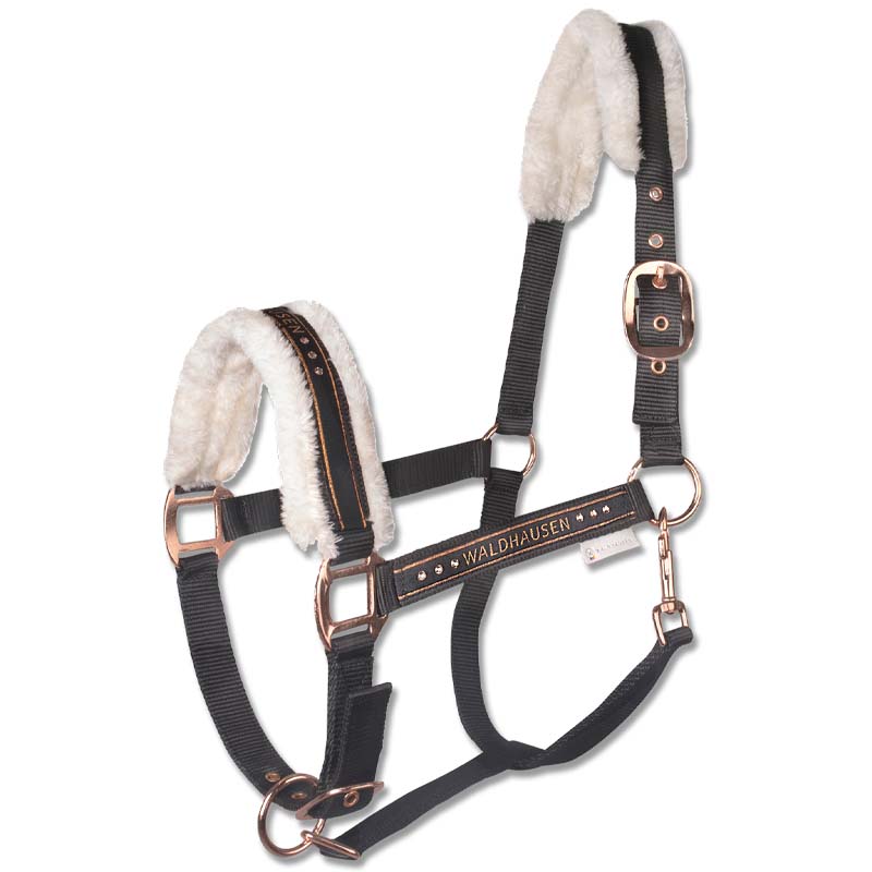 Capezza con elegante e morbida imbottitura su sovracapo e capezzina, creata appositamente con del pelo sintetico e dei glitter per renderla unica e originale nel suo genere. É regolabile sul sottomento e sul sovracapo per permettere al tuo cavallo di sentirsi a proprio agio in tutti i suoi movimenti. La fibbieria è satinata e la puoi trovare in vari colori.