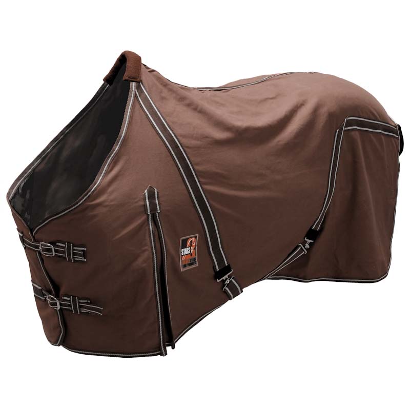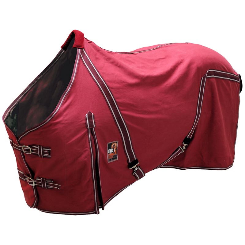 Coperta in Cotone con bordatura e con cinghie incrociate. La misura indicata è intesa come garrese/coda.