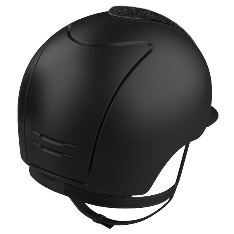 Casco Kep Italia modello Cromo 2.0 TEXTILE con inserto frontale in glitter nero. Il modello del Casco è il “CROMO T”, in particolare questo modello ha la calotta verniciata opaco nero, l’inserto frontale e l’inserto posteriore caratterizzanti sono rivestiti in tessuto con glitter neri, mentre nella parte anteriore, il frontino è verniciato opaco sempre in colore nero. Ancoraggio a cinque punti, con lacci in morbida pelle idrorepellente, anch’essi tinti in tono. Peso circa 450 grammi.