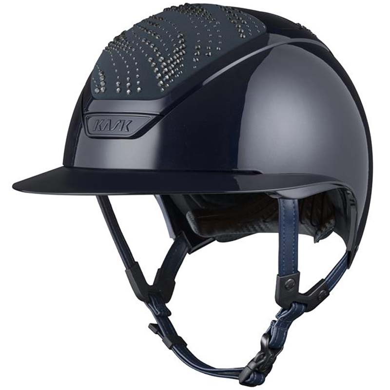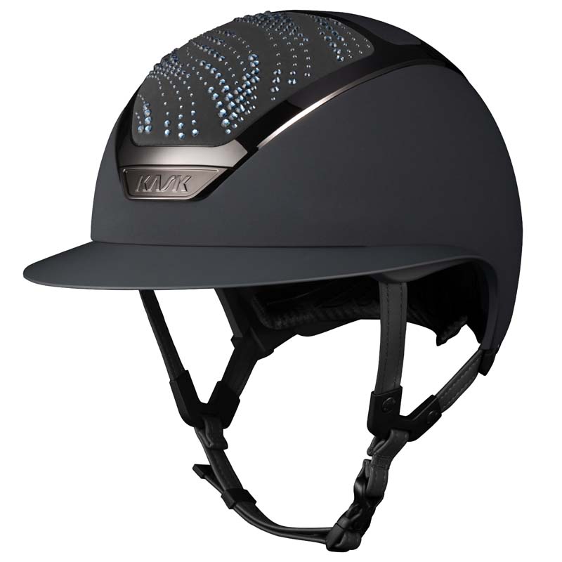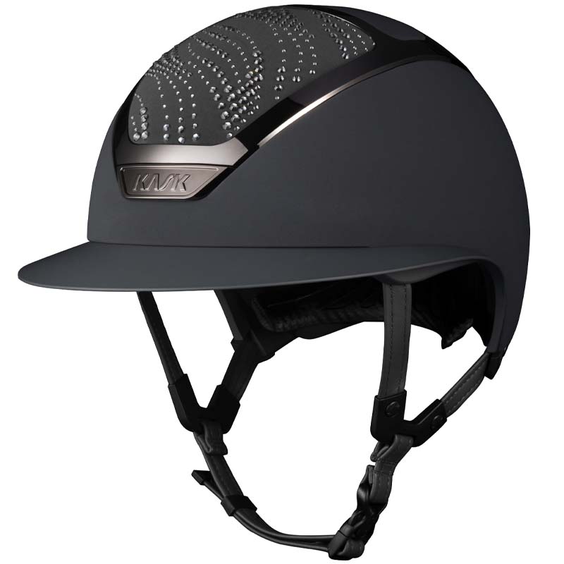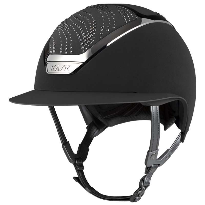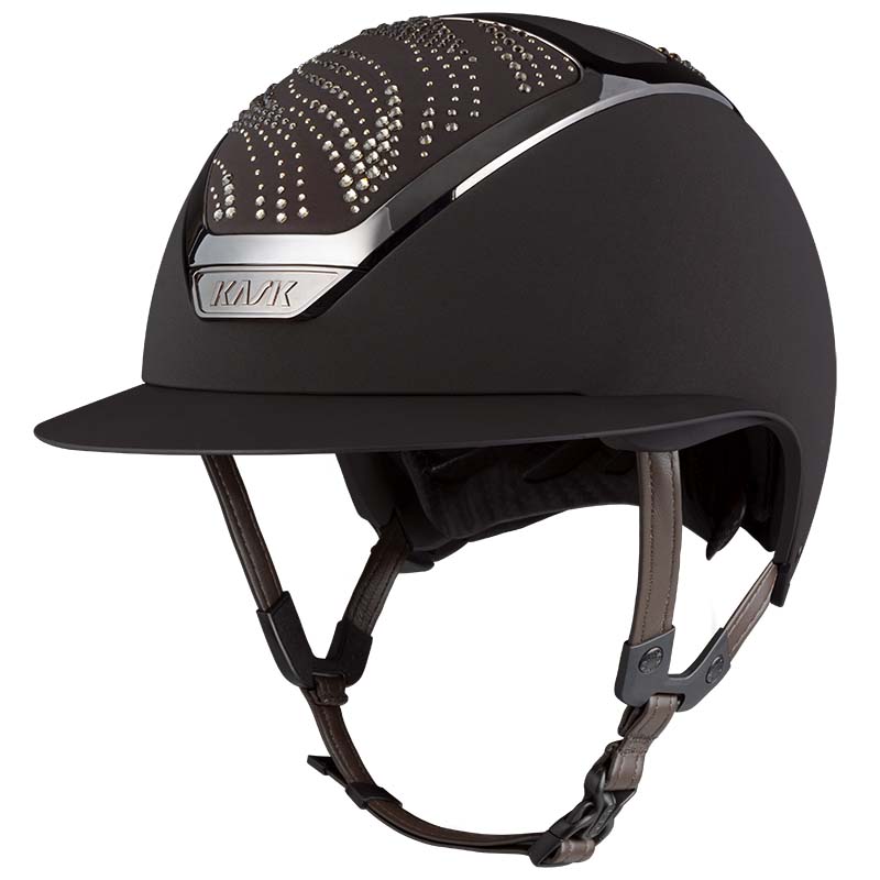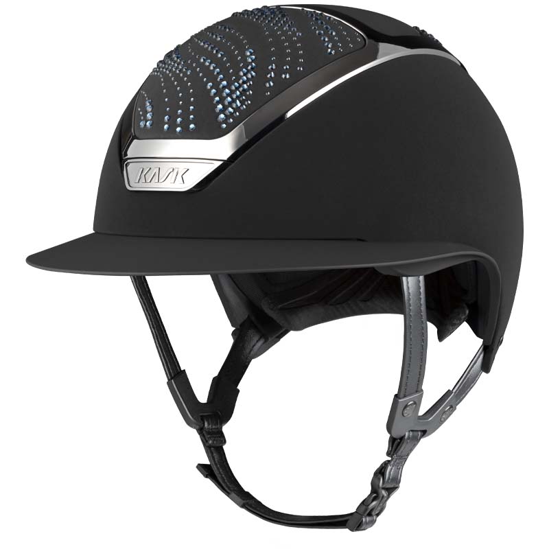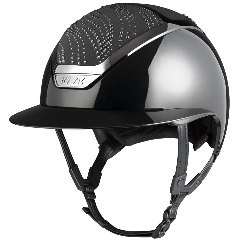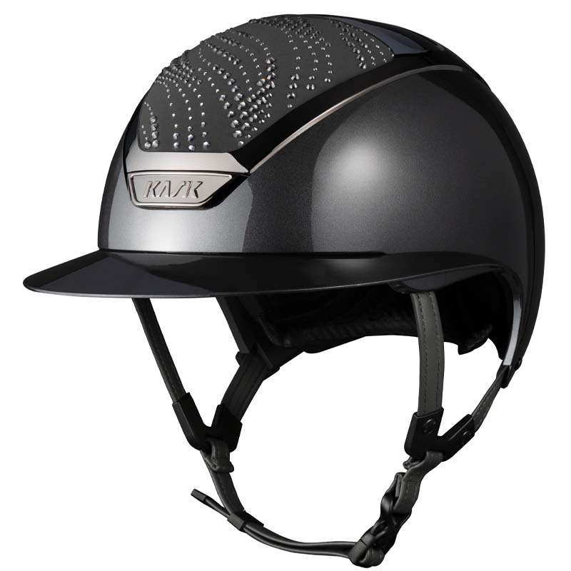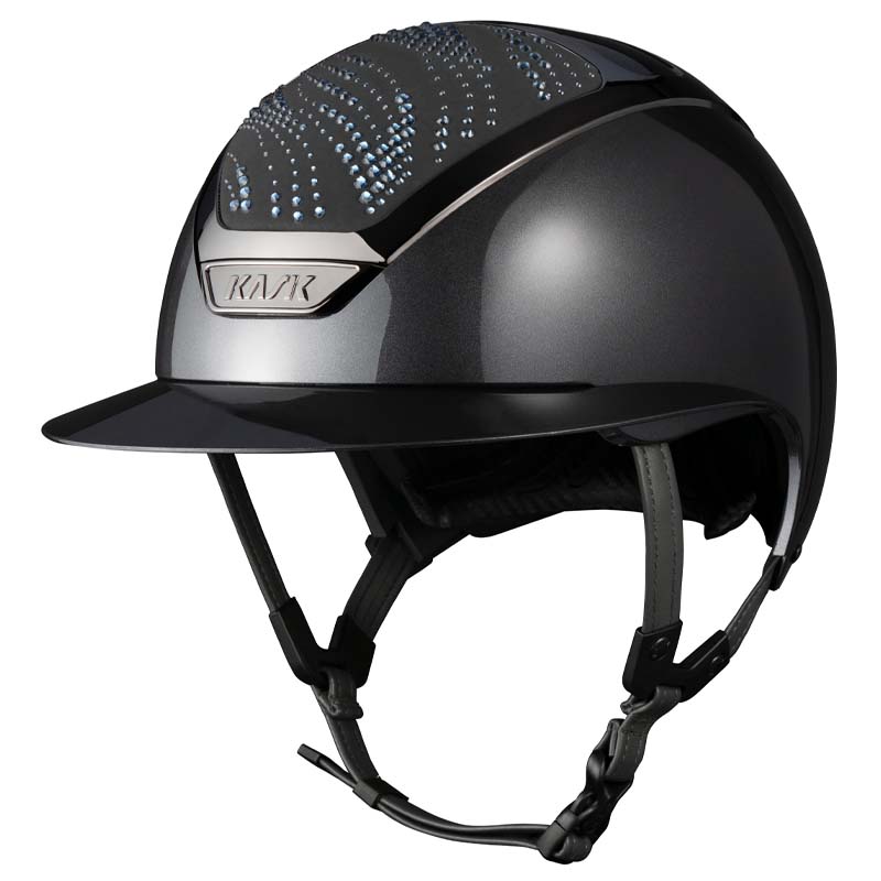 Il casco KASK Star Lady ANIMA è un modello premium con visiera larga, apprezzato da amazzoni che cercano eleganza e sicurezza. La parte frontale e posteriore della calotta è rivestita in tessuto e decorata da cristalli con configurazione Flow, una decorazione che ricorda le onde e crea un gioco di luce. Il casco può essere completamente personalizzato, scegliendo tra finitura lucida e opaca e 3 colori diversi di Swarovsky: blu Montana, grigio Graphite Mix e marrone Greige Mix.