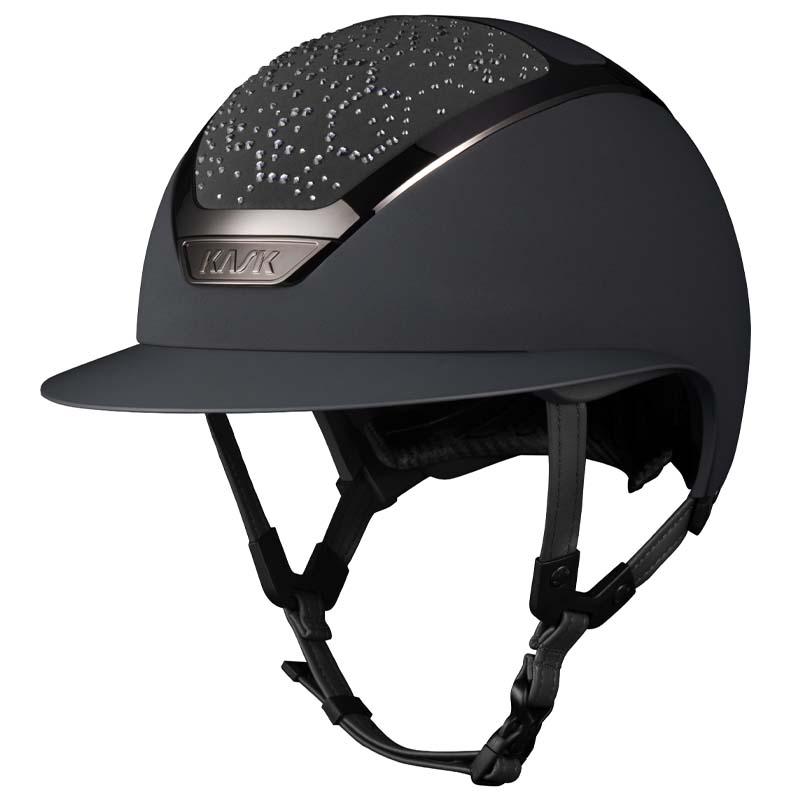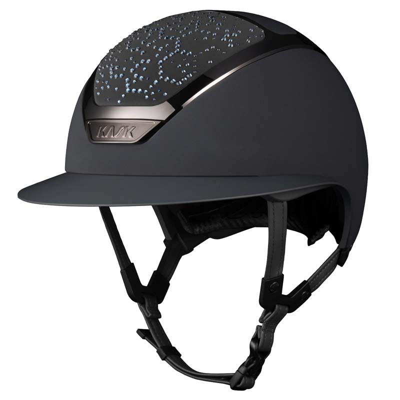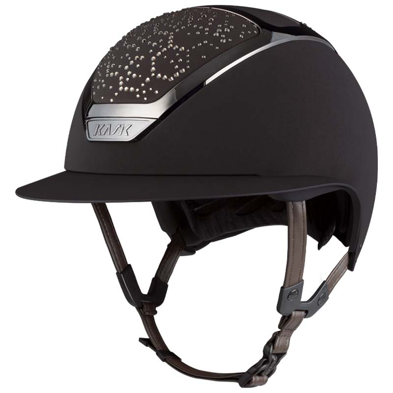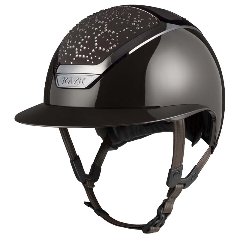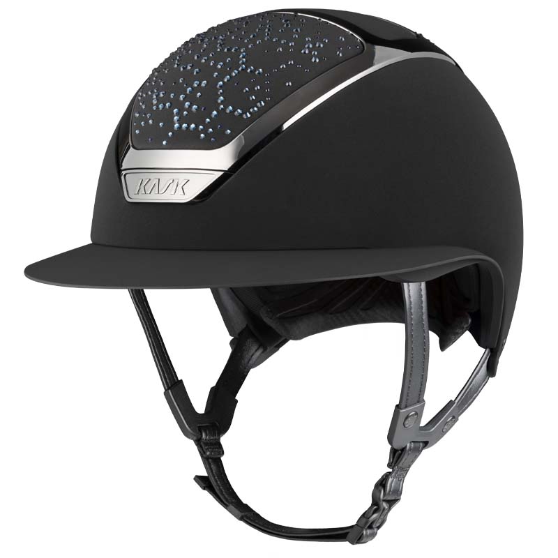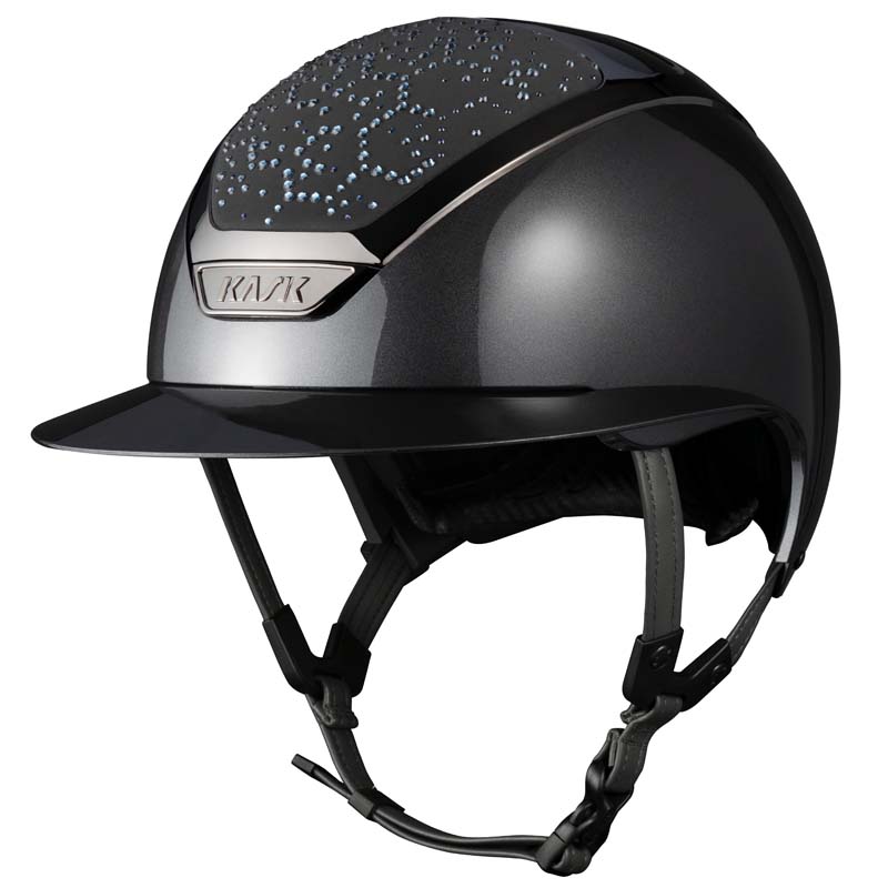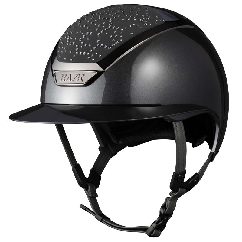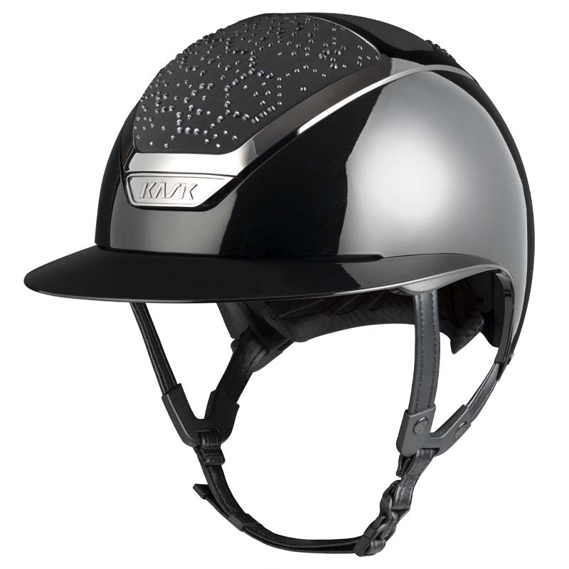 Il casco KASK Star Lady ANIMA è un modello premium con visiera larga, apprezzato da amazzoni che cercano eleganza e sicurezza specialmente per concorsi e gare di alto livello. La parte frontale e posteriore della calotta è rivestita in tessuto e decorata da cristalli con configurazione Vibe dal design stile “nido d’ape”. Il casco può essere completamente personalizzato, scegliendo tra finitura lucida e opaca e 3 colori diversi di Swarovsky: blu Montana Mix, grigio Graphite Mix e marrone Greige.
