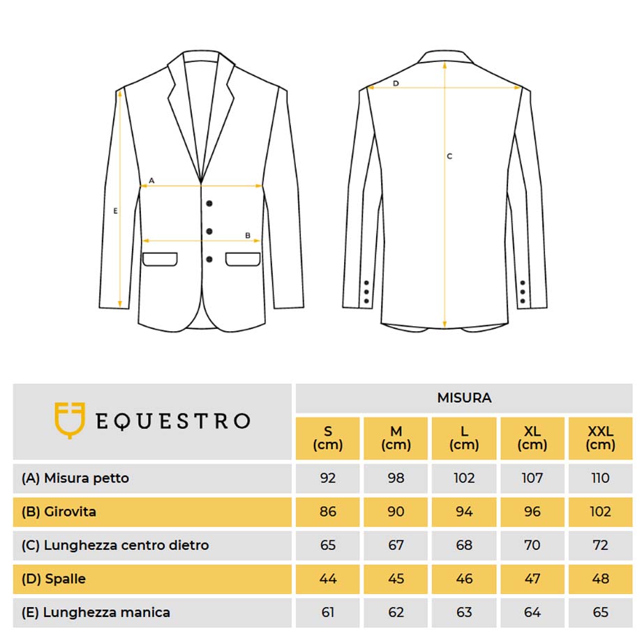 La giacca da concorso Girasol di Equestro è realizzata in tessuto tecnico elasticizzato e traspirante, confortevole anche durante le giornate più calde. È un modello classico da uomo, con chiusura con 3 bottoni, taschine laterali e bottoncini sui polsini.